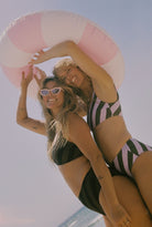 The Duke Pant is a mid waist bikini bottom with full bottom coverage.